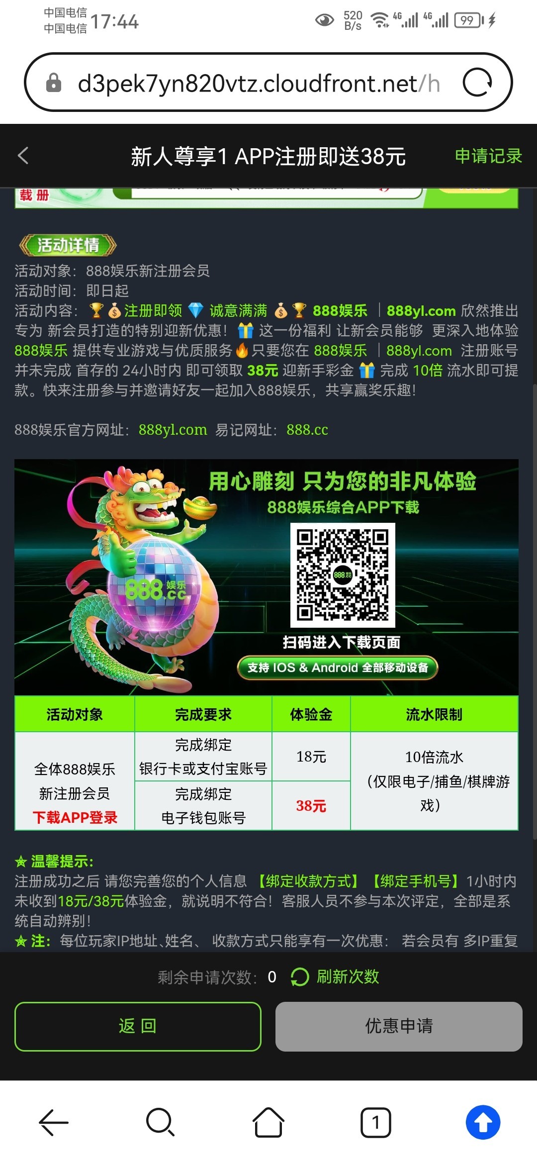 不是特邀好像也送我是没收到短信的时候就申请到了现在别的手机号收到短信了也送了一个没打出来有兴趣的可以去试试官网888.cc短信特邀网址https://apirh.vin