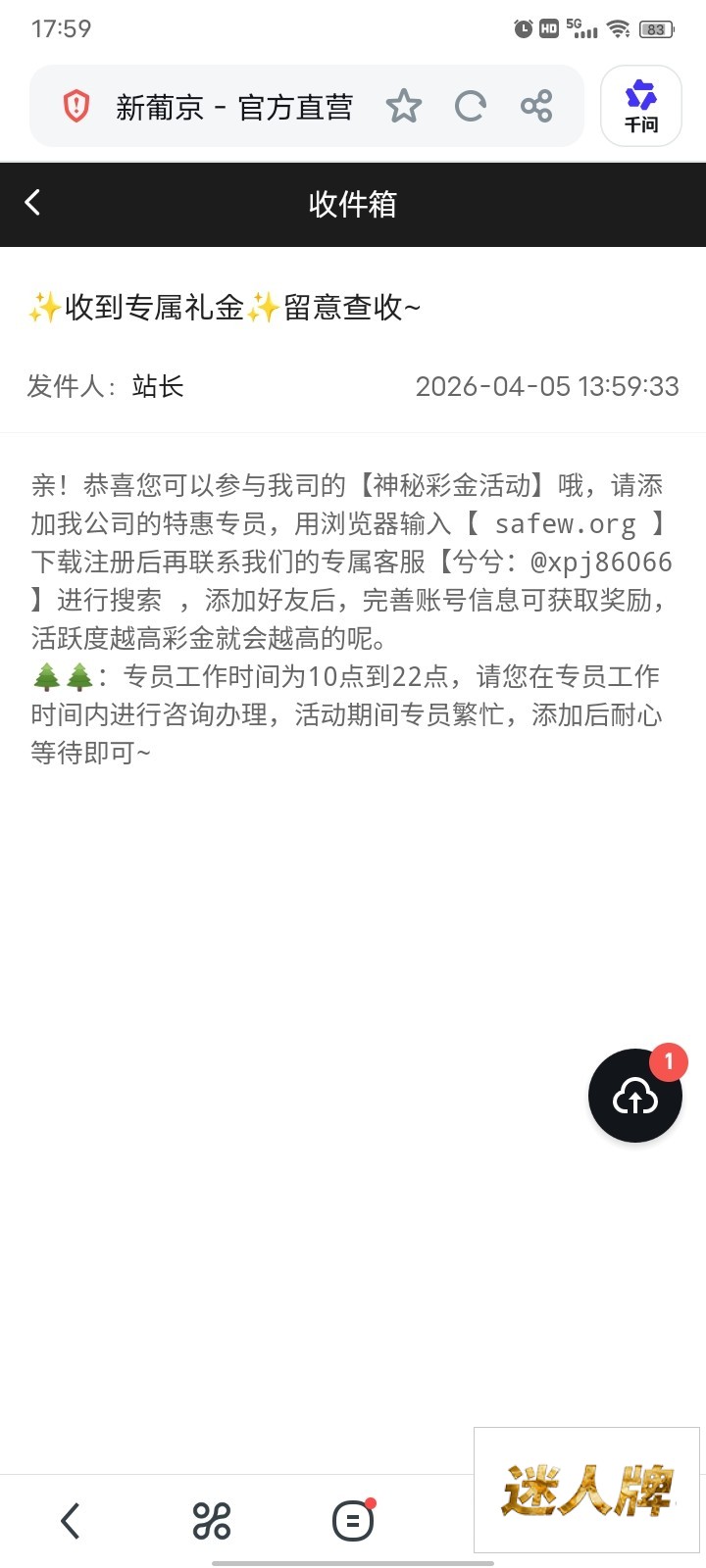 【新葡京860】站内信神秘彩金