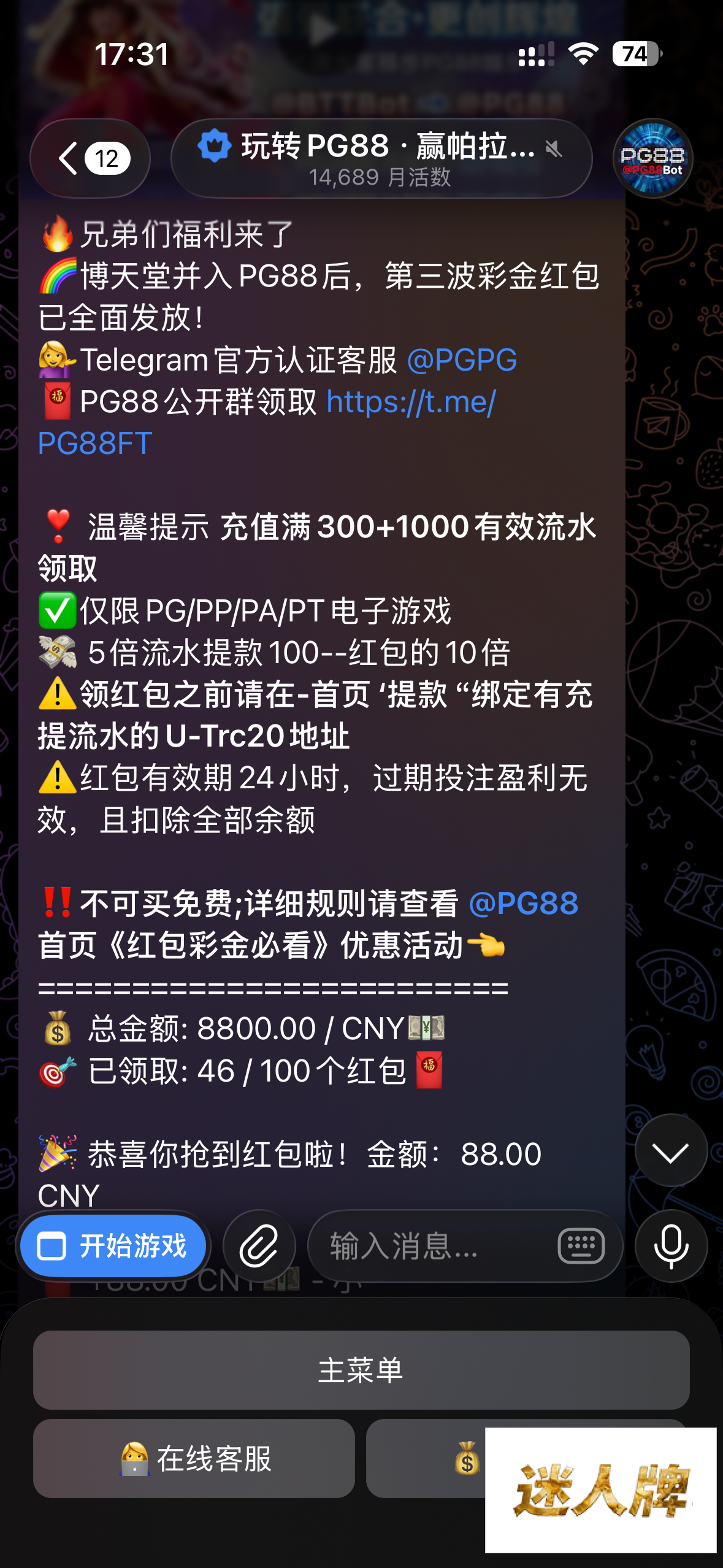 历史充值三百 一千流水可以领 平均88飞机群https://t.me/PG88FT 速去