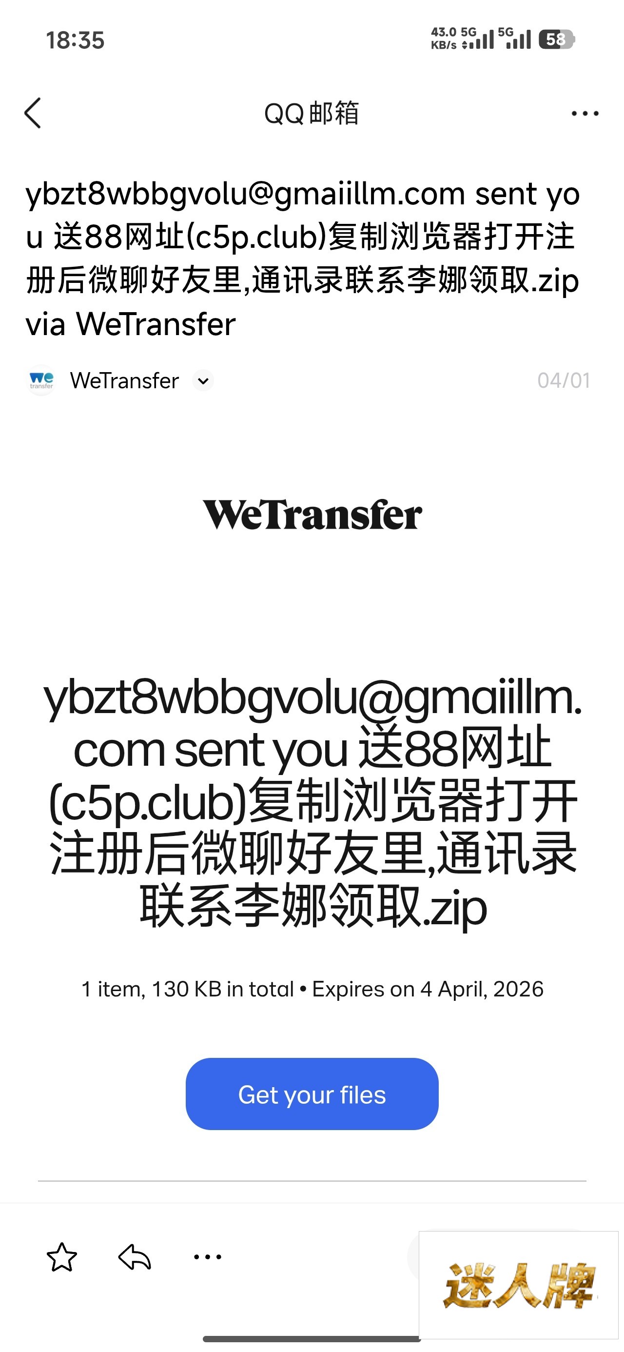 QQ邮箱看看有没有这个短信 有的去注册好了在首页微聊联系客服领取28特邀彩金288提