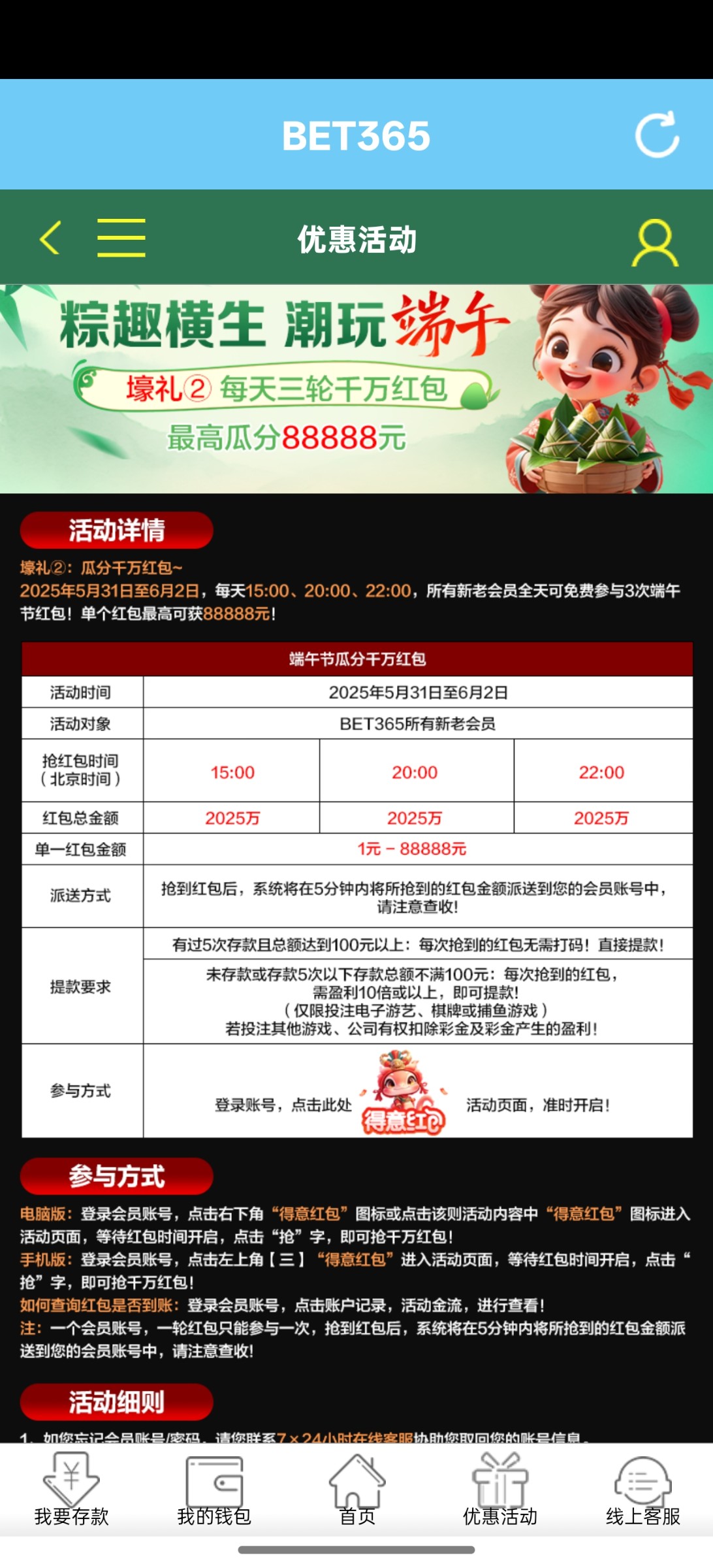 【bet365】端午三天抢红包