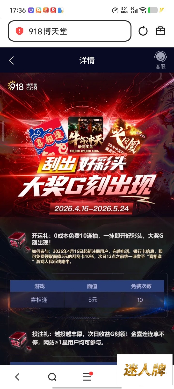 博天堂:py8mtxmh.com 或 0xux88wg.com4月16号起注册可以领5块面值的刮刮乐可以刮10次免费领取次日12:00之前到账