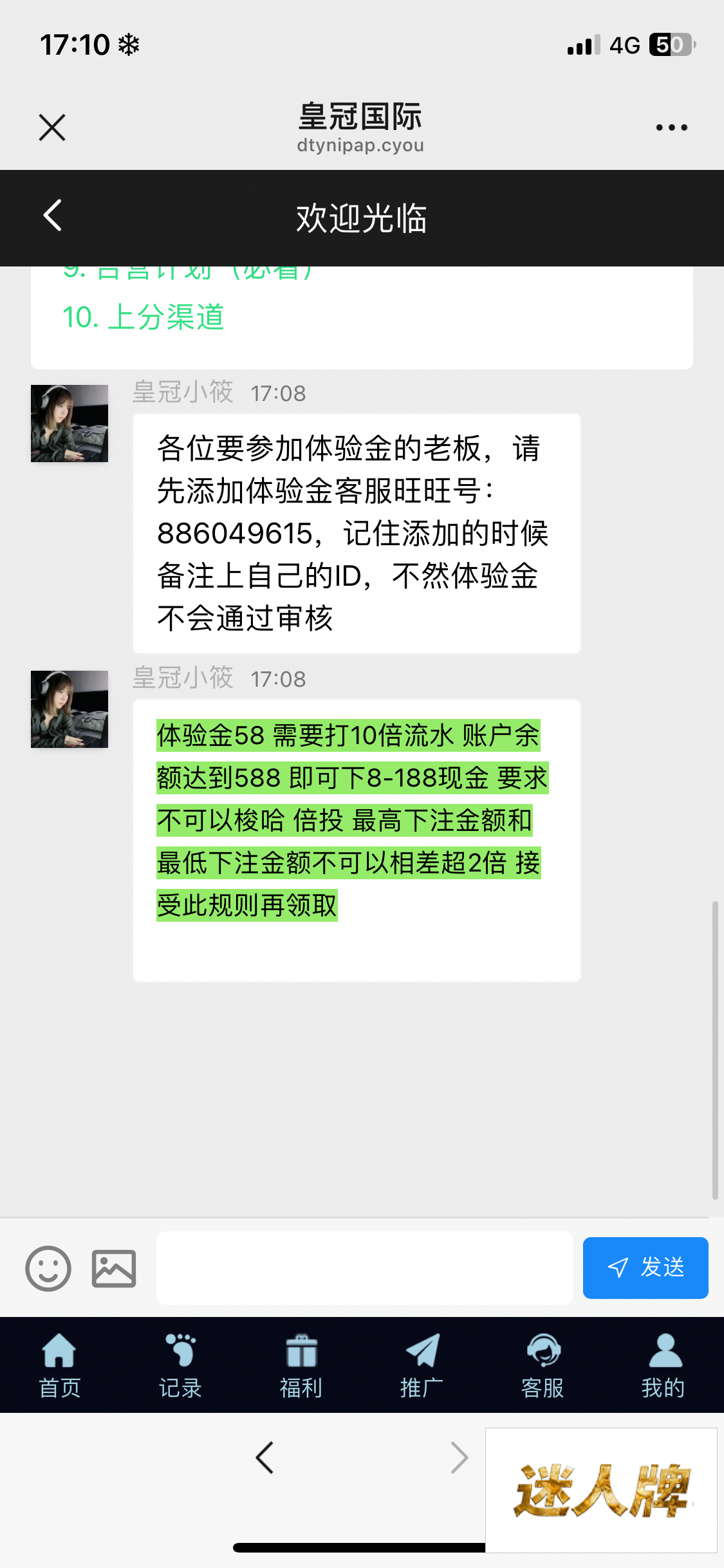 活动这个需要加旺旺客服发ID,添加备注ID去充值提交58