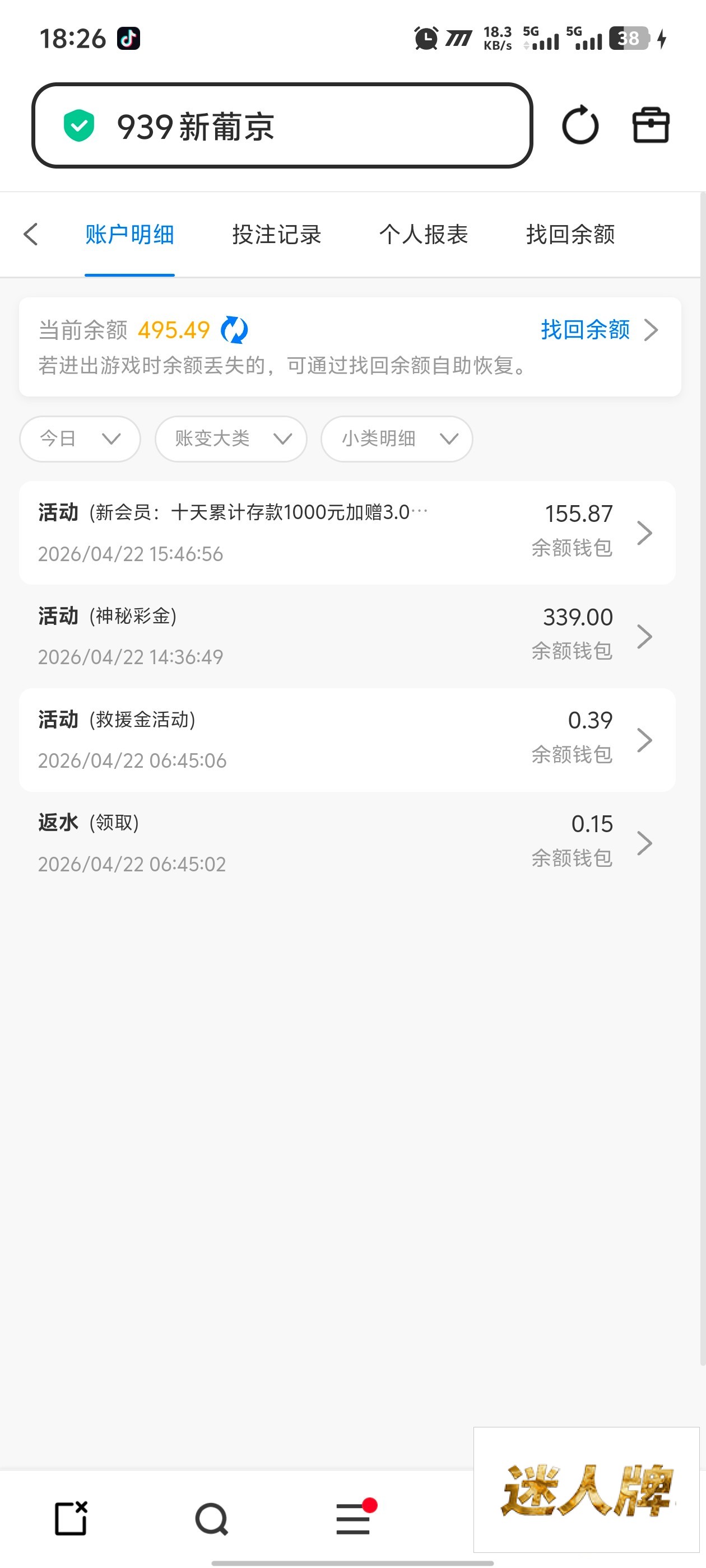 388神秘彩金,充值过的去看看,我就充了一万一千多,负盈利两三千链接939.com