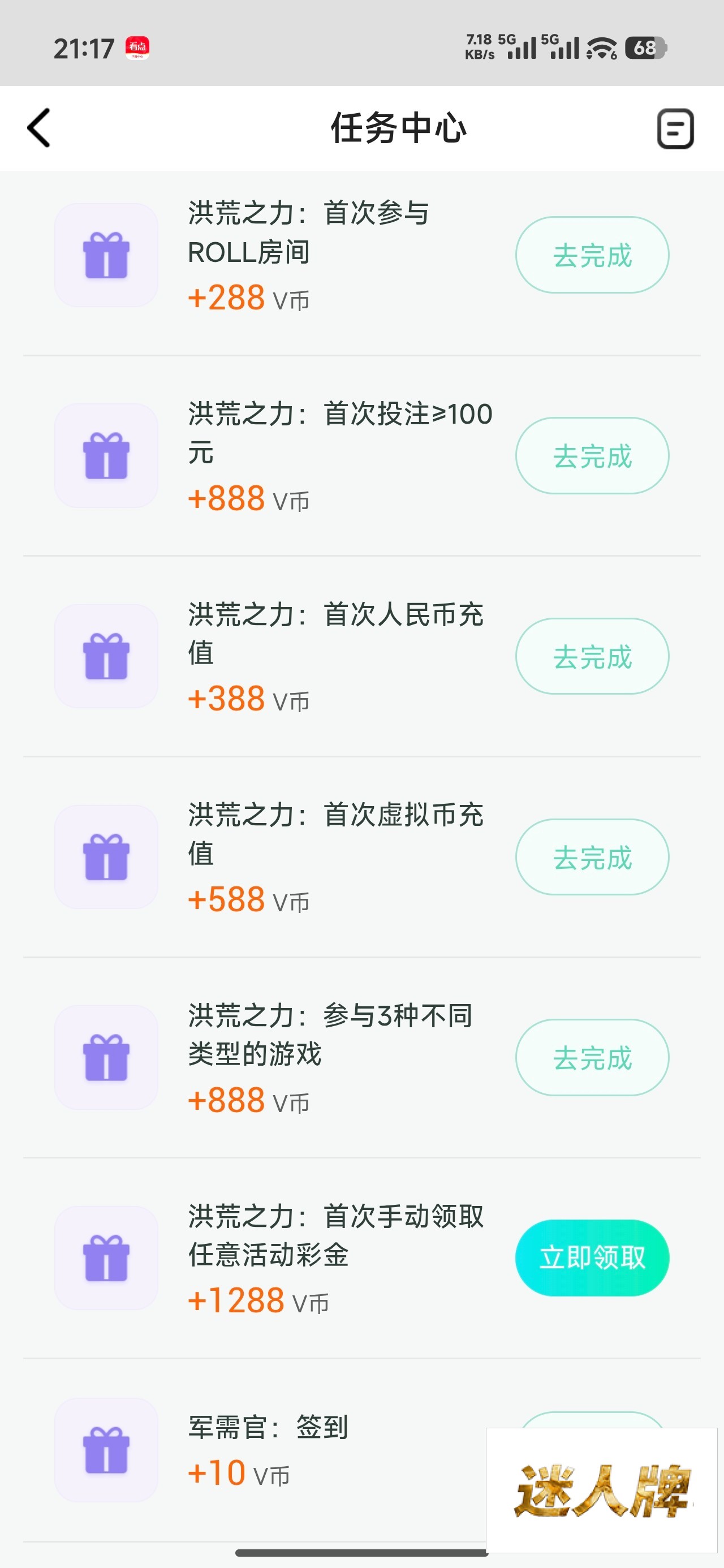 还可以做任务领积分换彩金,任务很简单绑卡设置密码这些,出款还没试过,还没打到