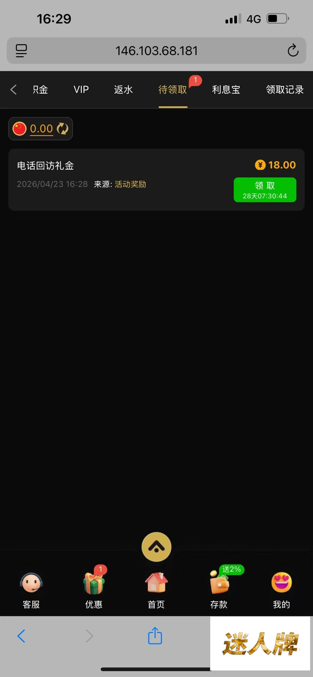 大号昨天接到电话领取到了。这个是小号之前注册的可以碰瓷一下链接595.vip