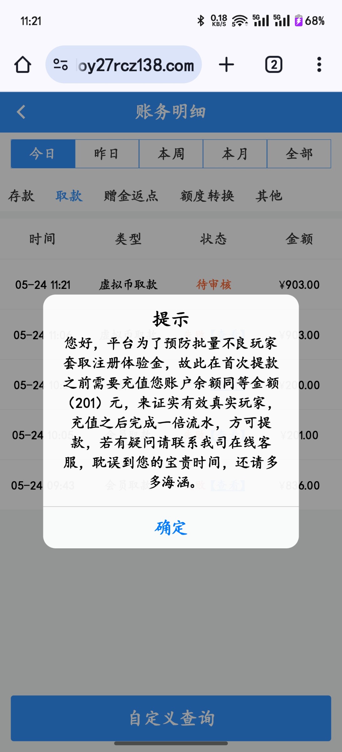和万豪国际一家的普京黑台。登录账户有几块余额,打到200不给出,让冲200打一水,我就冲了,打了大几百流水以后,不给提,让冲900。他妈的无限套娃。小蓝台黑台真踏马多。兄弟们注意避雷。