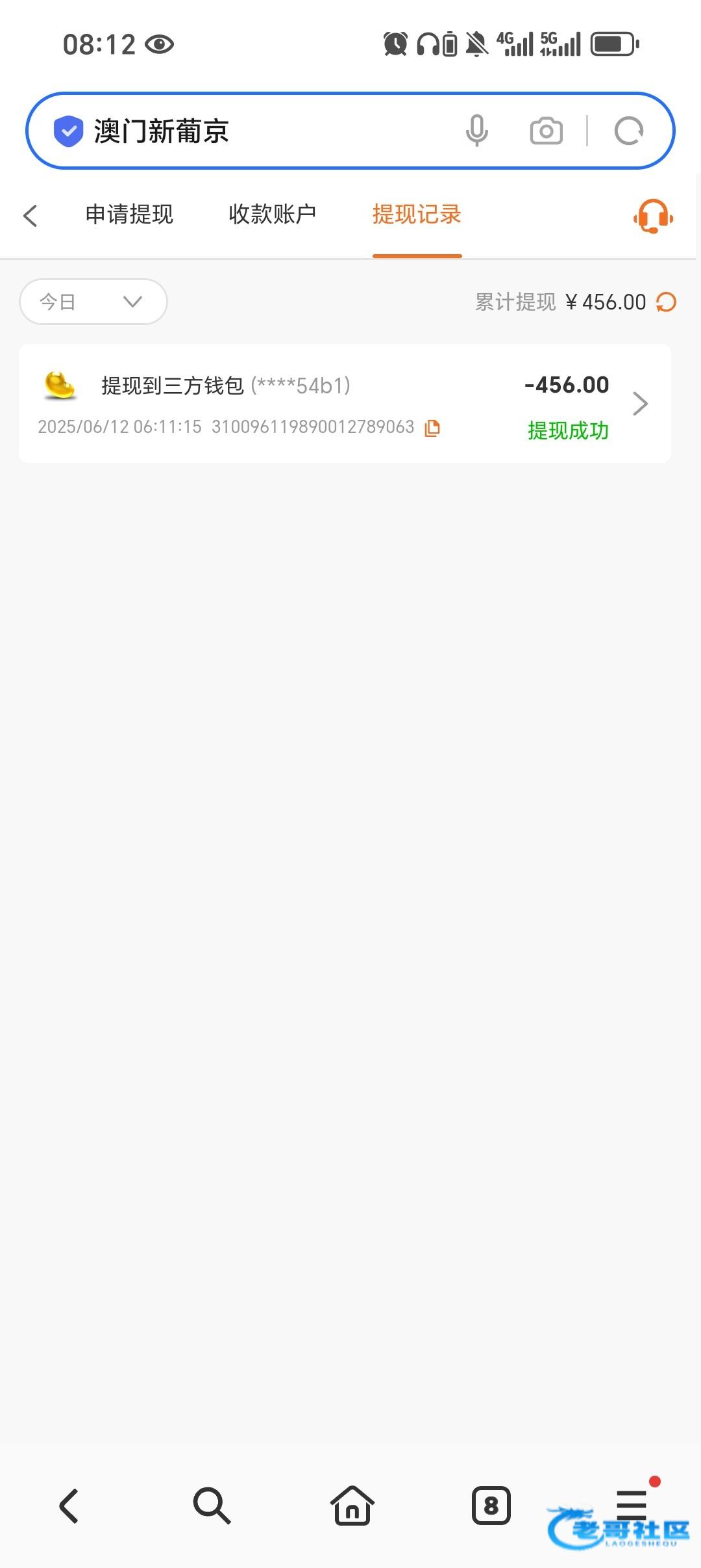 早上5点多醒了看见短信点开试了一下领了44,打到465提了钱包秒到账,之前碰过没特邀今天直接吃到了,想碰的老哥可以去试试,没有别中出