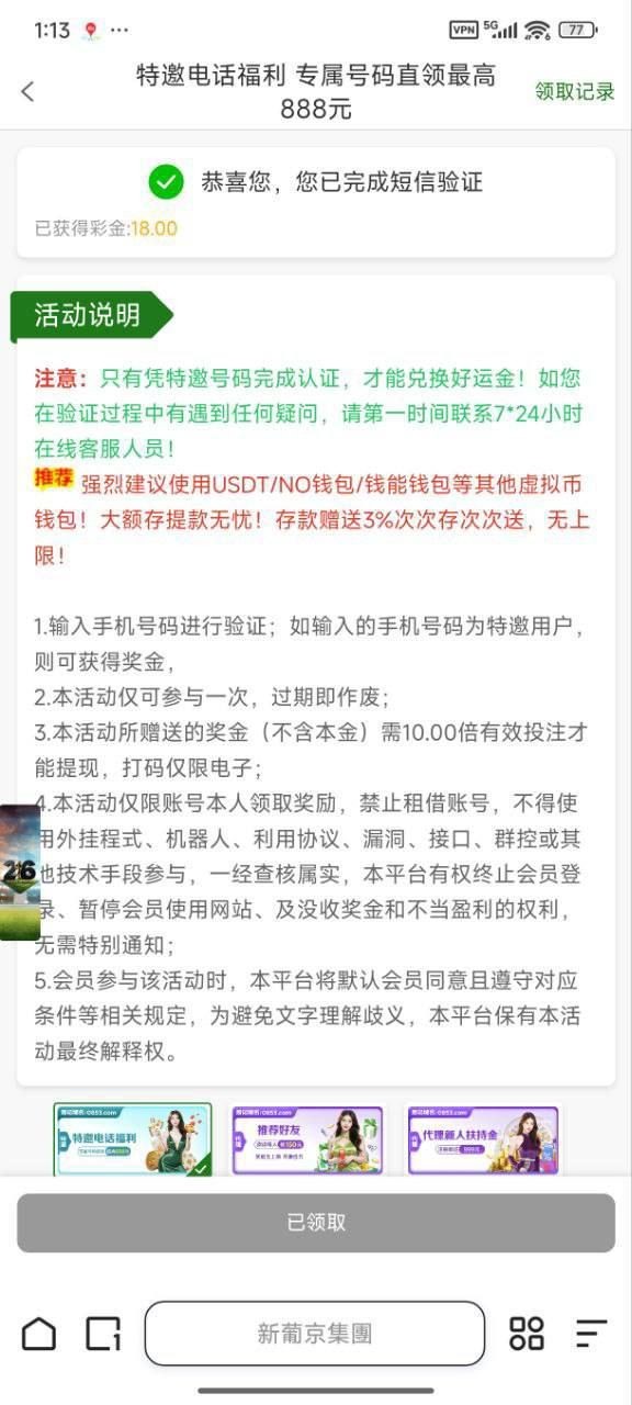 新葡京集团999 送18 999.ai 注册在优惠里自助申请电话特邀彩金,彩金限制电子,10倍流水即可提款。没有就无视!